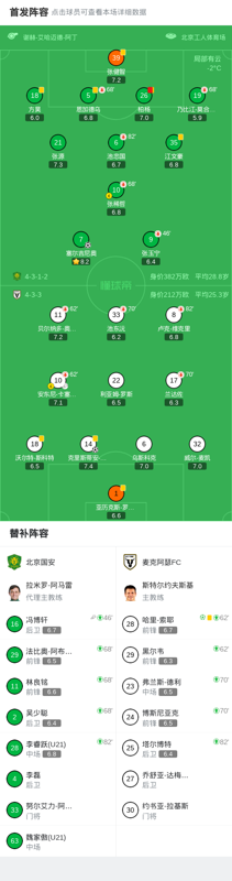 第56分钟,卡塞雷斯开出角球,波波维奇前点头球破门,国安0-1落后麦克阿瑟