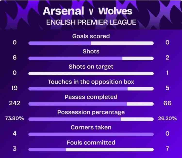 12月14日讯 英超第16轮比赛,阿森纳上半场0-0战平狼队。