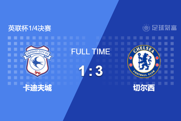 最终全场比赛结束,切尔西客场3-1淘汰卡迪夫城晋级。
